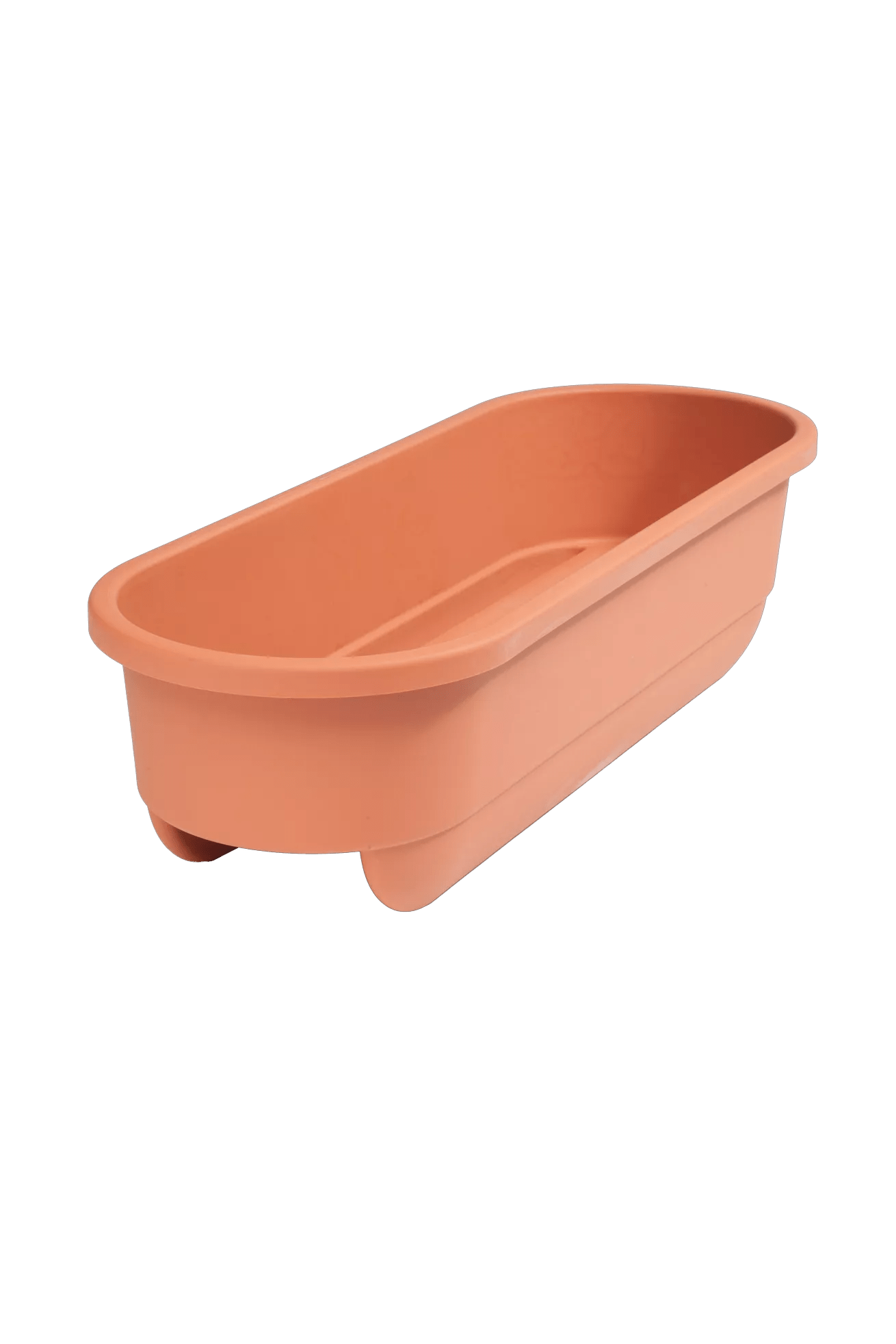 Dress up your deck and add color to your front porch with these convenient self-mounting planters. Thanks to a patented saddle groove, they slip right over deck railings without tools or fasteners, and they won't blow away or fall off. Choice of designer colors.