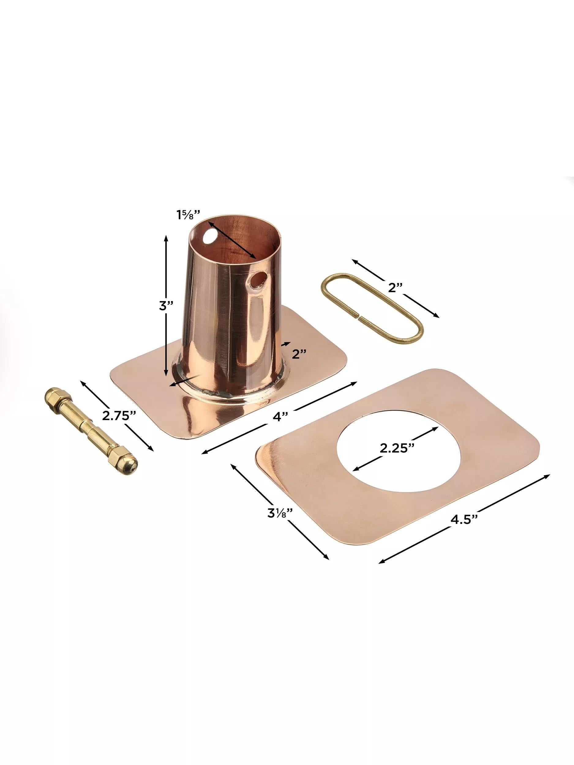 Our Pure Copper Rain Chain Gutter Clip Funnel improves water flow, reduces splashing, and beautifully compliments your rain chain. The funnel fits most gutters and comes with an additional copper plate to fit larger gutters. Installs in minutes.