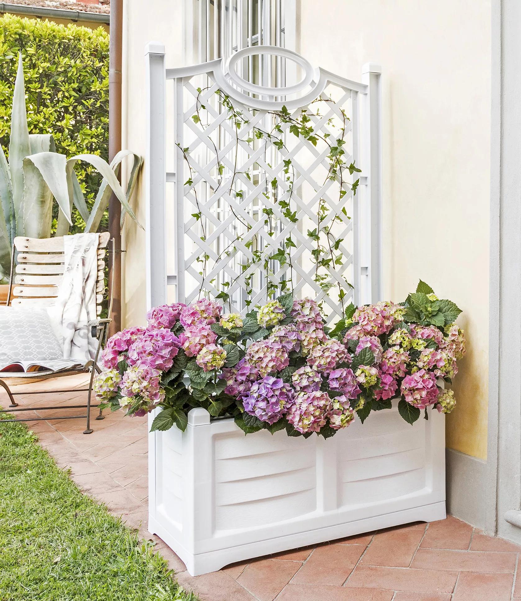 Not only is this a beautiful planter, but with the attached trellis you can grow vertical as well. Use simply as a statement planter, or use it for privacy to limit views from neighboring yards. Liner is not included.