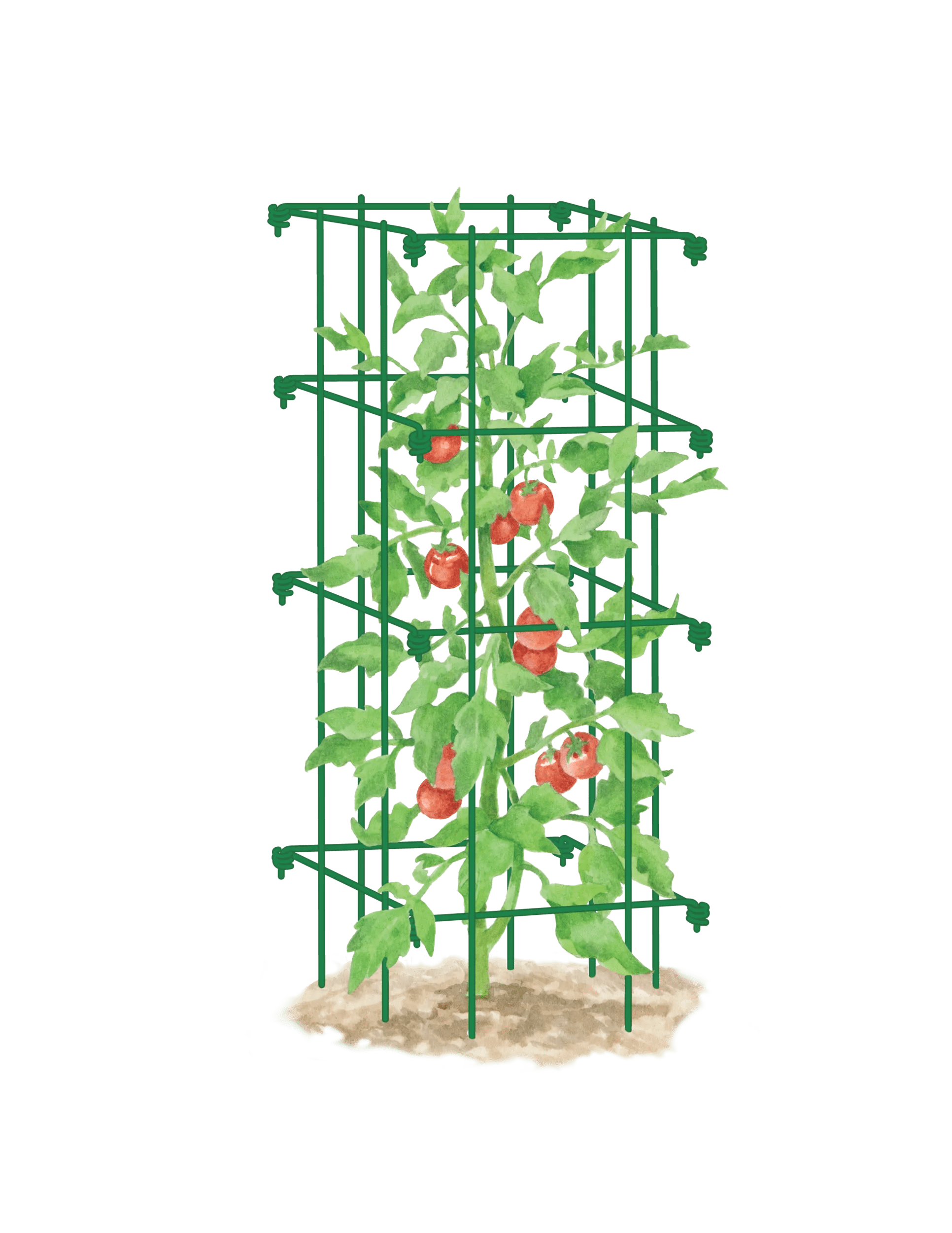Taller, wider, and stronger than old-fashioned cone-shaped supports, our heavy-duty, powder-coated steel tomato cages are longtime best-sellers and perennial customer favorites for good reason! Unlike flimsier versions, these are strong enough to support full-grown vines loaded with tomatoes. The cages support plants on all sides (no tying needed) and keep plants up off the ground for better air circulation, cleaner fruit, and fewer diseases. Large openings make harvesting easy, and the cages fold flat for easy off-season storage. In windy locations, we recommend anchoring with our Extra-Tall Earth Staples.