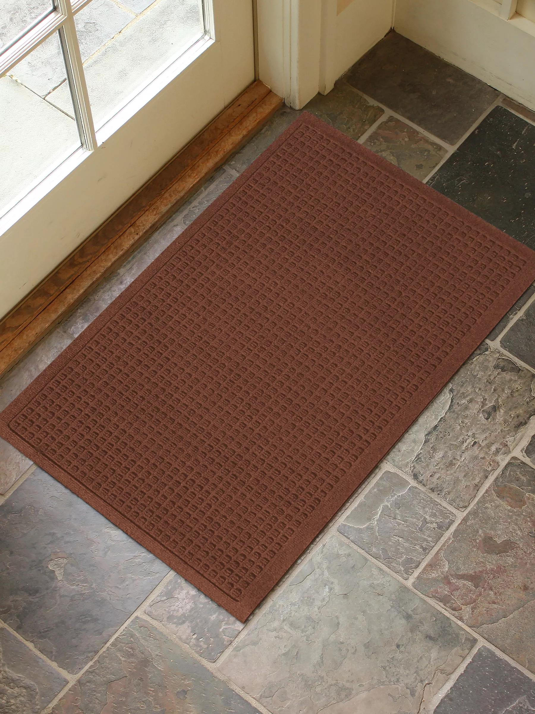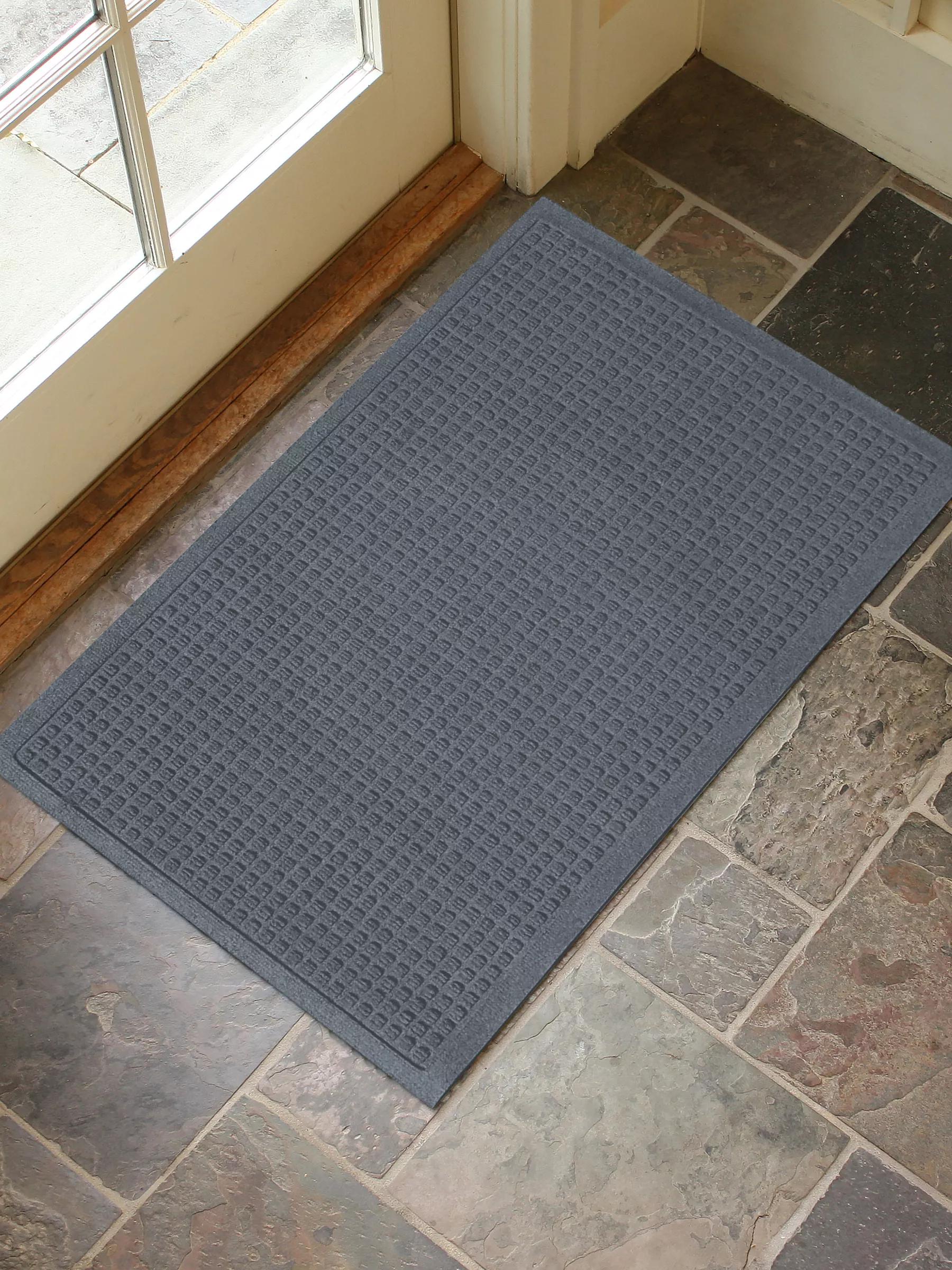 When life becomes a revolving door of muddy feet, dirty paws, and whatever else Mother Nature can throw your way, you need more than just a mat — you need a WaterHog! Built to tackle the rain, snow, mud, and other messes your loved ones track in, these good-looking and hard-working mats sport a textured design to scrape shoes clean, and a "water dam" edge to neatly contain up to 1 gallon of moisture. Made of durable, anti-static recycled polyester that dries quickly, resists mold and mildew, and won't fade or rot. A recycled rubber backing with non-slip grippers keeps your mat securely in place. Low profile for easy door clearance. Super easy to clean — simply vacuum when dry, or hose off and air dry for deep cleaning. The hardest part will be choosing a color!