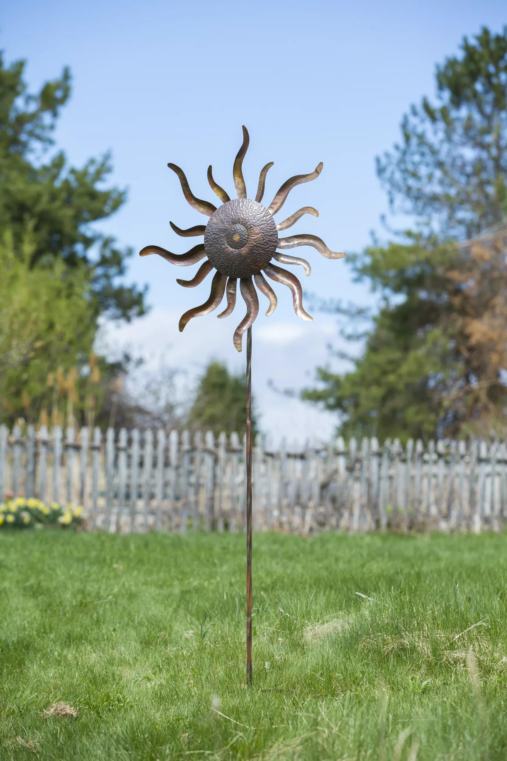 Decorate your garden with a Sun Wind Spinner garden stake with a flamed copper finish. Adds attraction to your landscape when a breeze makes it spin.