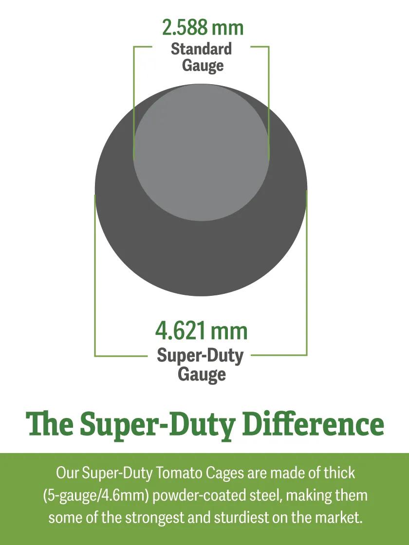 Get ready for your tomato-est summer EVER! Tomatoes grow and produce best with support, and 4.6MM (5-gauge) powder-coated steel makes this set of heavy-duty cages one of the most robust on the market. Added weight and strength make for our sturdiest-ever tomato solution—especially helpful when it comes to indeterminate tomato varieties (cherry tomato lovers rejoice!). Use two cages stacked—and secured with the included clips—to create two sturdy, extra-tall supports for your indeterminates (provides ~6' and 200 lbs. of above-ground support!), or use the four individual cages to bolster your determinate varieties.