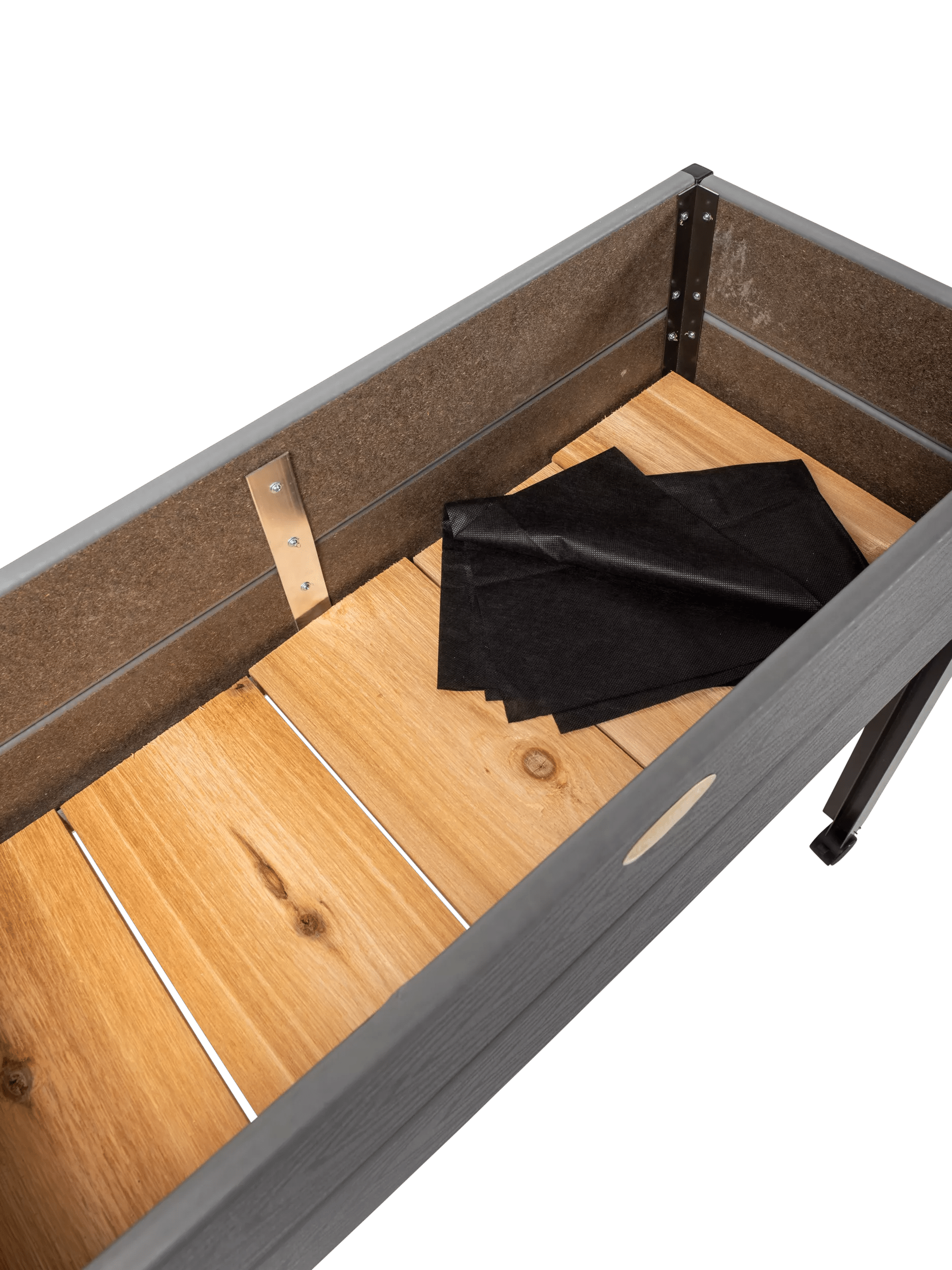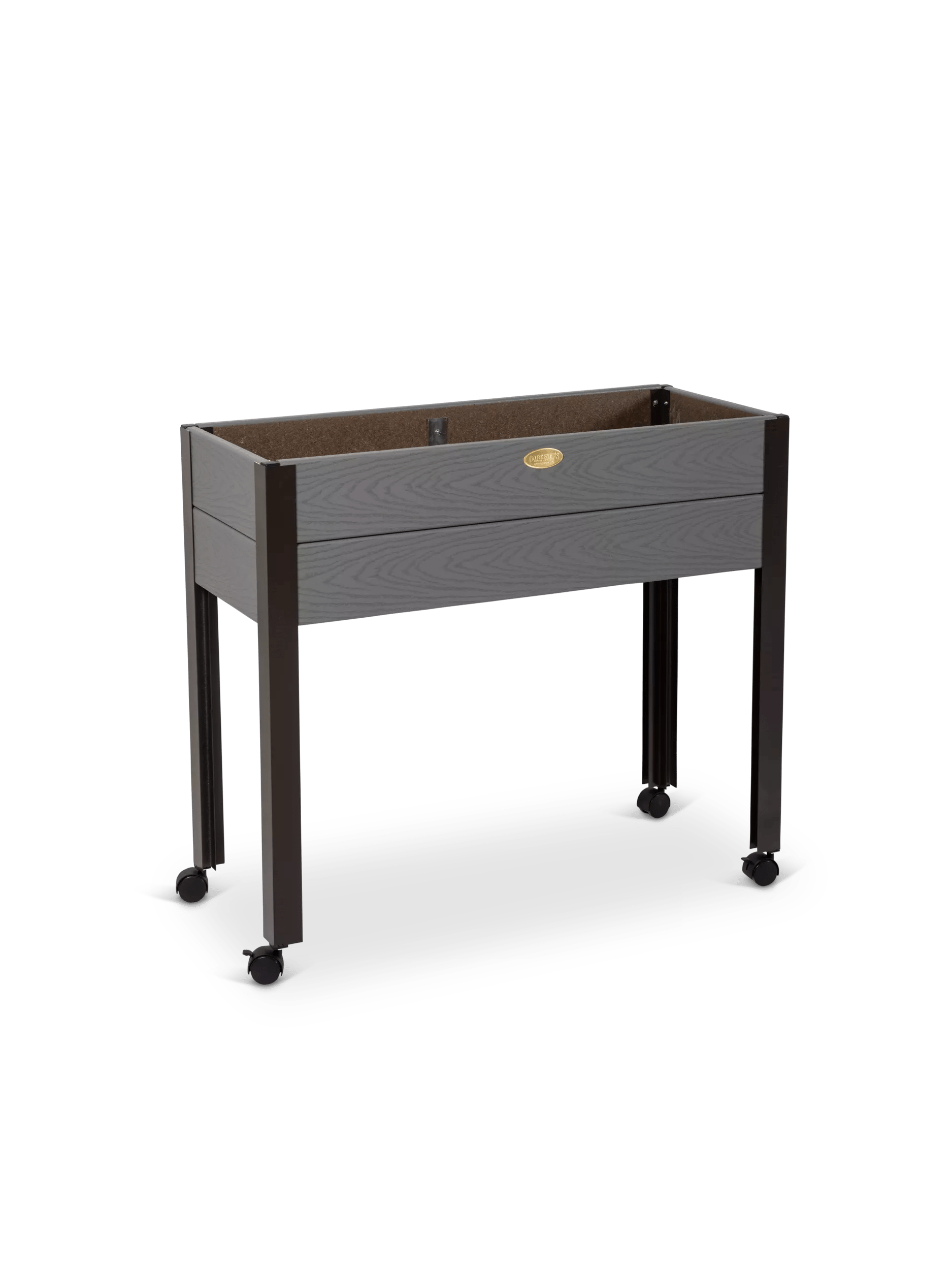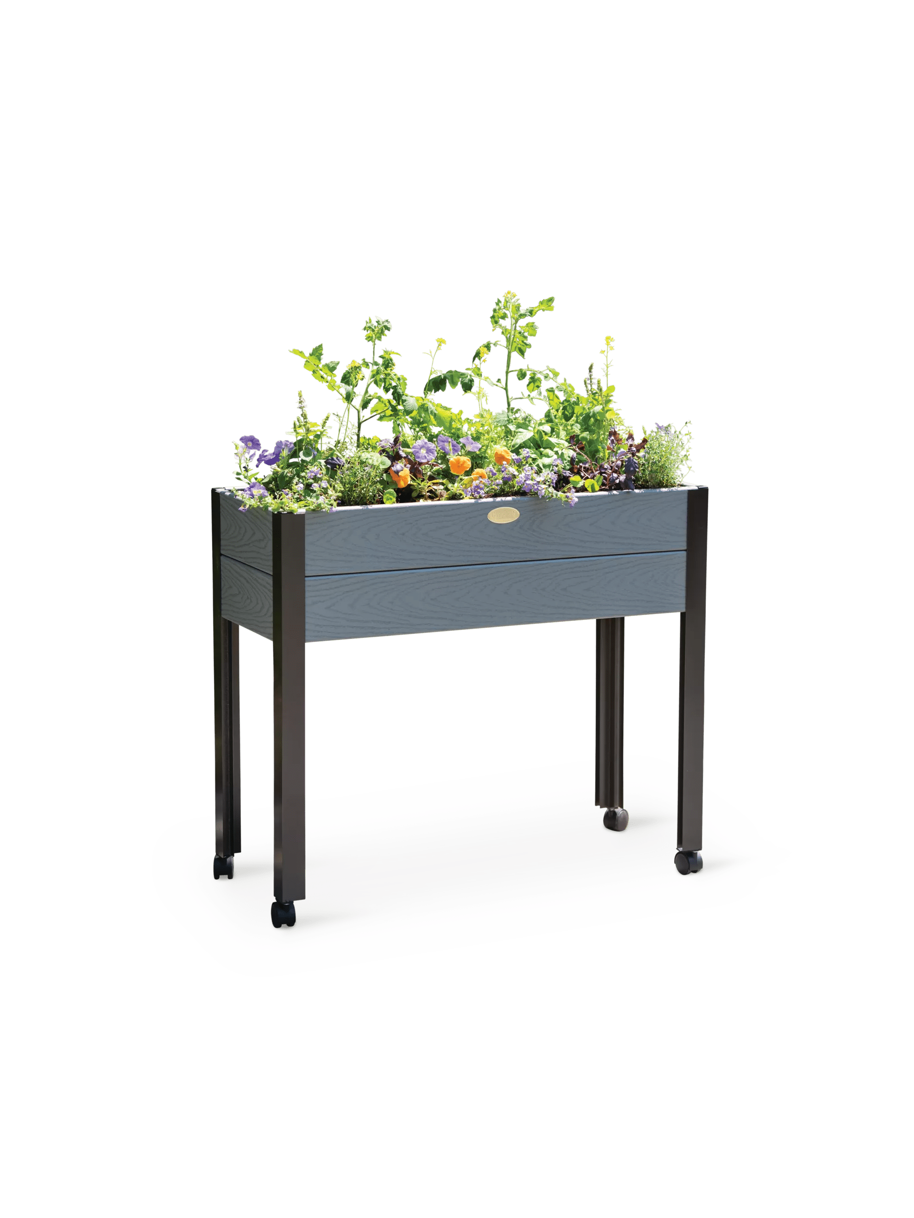 Though it’s small enough to fit on your porch or patio, our Sustainable Rolling Patio Garden is a big deal! Made from a composite of recycled plastic & reclaimed sawdust, this unique planter is attractive, durable & super sustainable! Setting up in minutes and lasting for decades, the beds have the attractive look and feel of silvery aged cedar, but will never splinter or rot. With rolling casters attached to our rust-proof, industrial-strength Lifetime aluminum legs, these compact and mobile beds are easy to move around your deck or patio. The elevated height is easier on your knees and back, and a generous 9.5" planting depth provides plenty of root space for everything from herbs, veggies, and flowers, to an entire salsa garden!