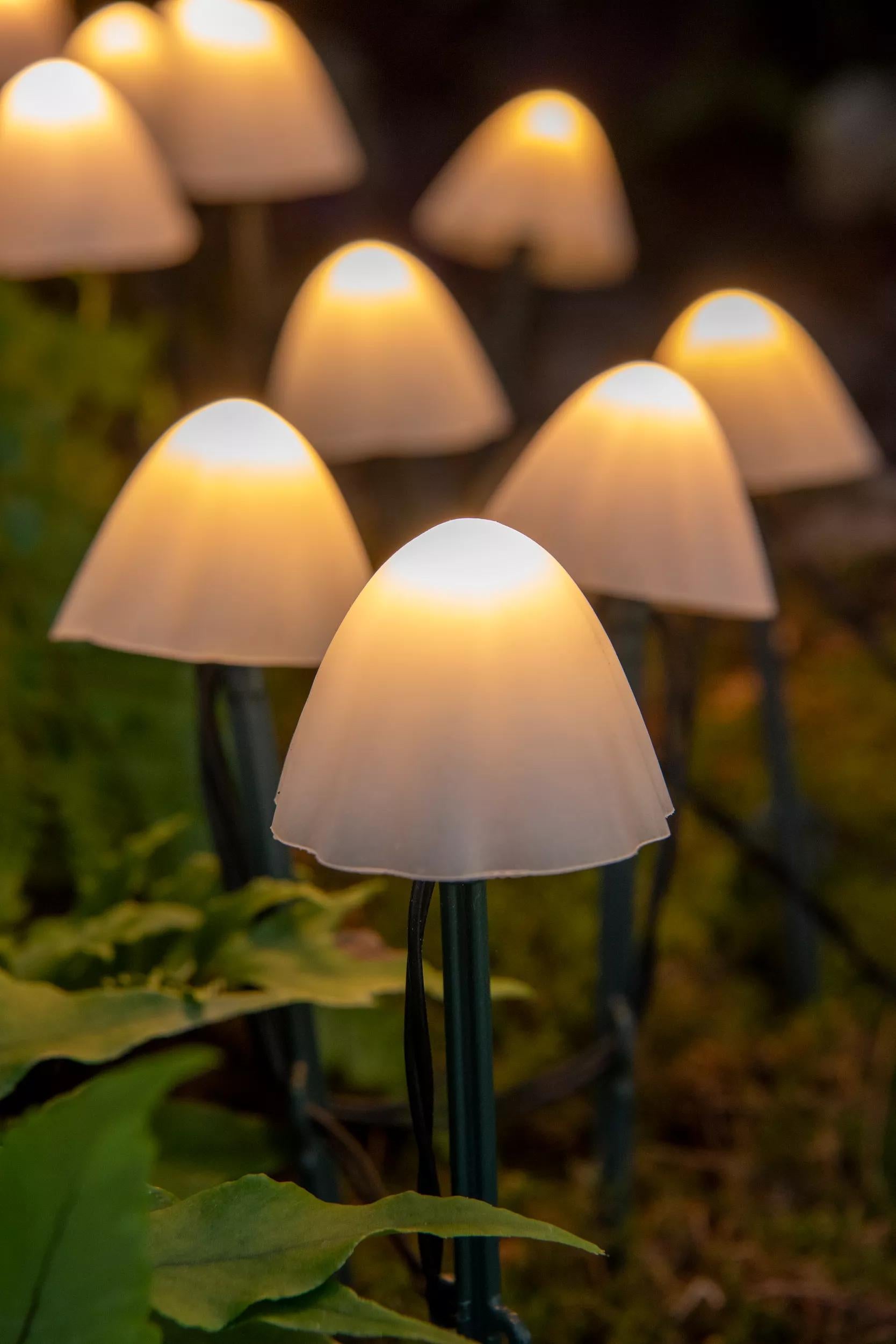 - String of 20 LED mushroom lights adds allure & illumination