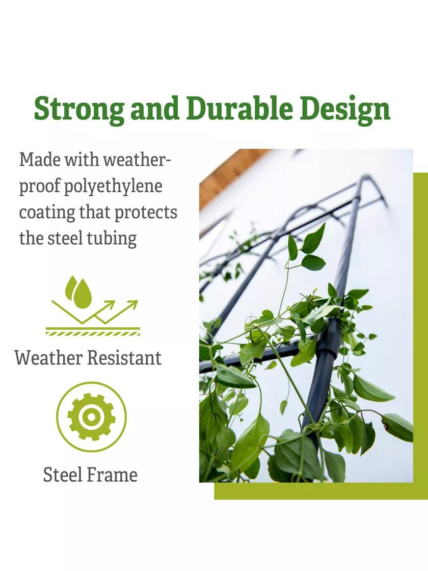 Snap the parts together, lean it up against a wall (keep it within 36" at the base for best results), and get planting! Like everything in our flagship Titan Collection, strong steel-core supports are poly-coated and gentle on plant stems. We added a twist to the verticals to make it extra-easy for vines to grip and climb skyward too!