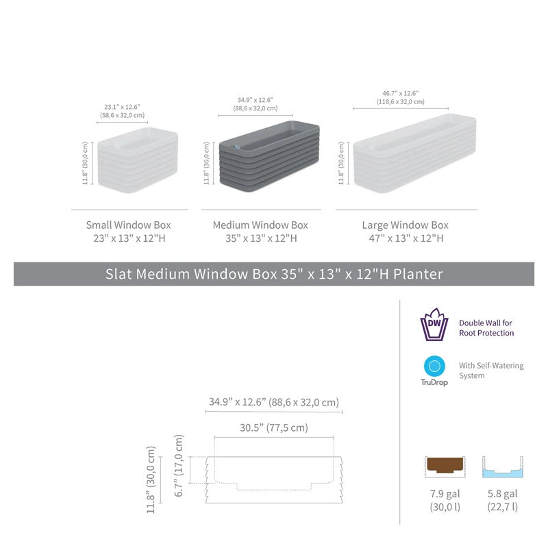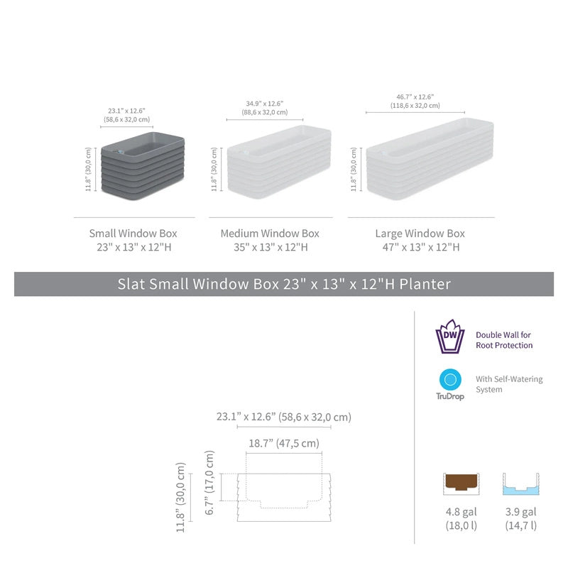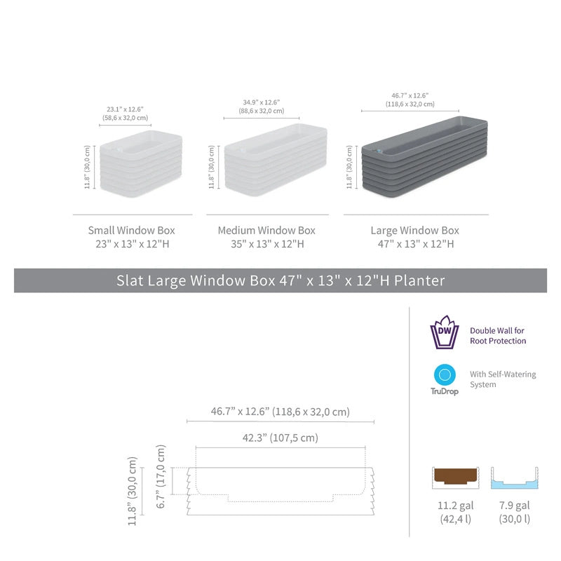 Ideal for window flower boxes, our custom brackets seamlessly click into the planter, offering a discreet and stylish solution. Additionally, these versatile window boxes can be placed on the floor to create a low perimeter barrier for small balconies or entryways. Don't miss out on the other stunning options in our Slat Collection. Versatile for both indoor and outdoor use.