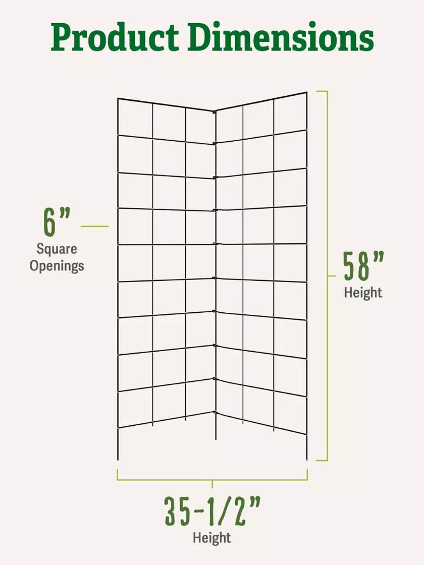 Use this trellis as a flat backdrop against a wall, or angle it around a corner to maximize space in your raised bed. Sturdy powder-coated steel panels offer great support for cukes, squash, beans and peas, as well as compact flowering vines. Folds flat for storage. Generous grid openings make harvesting easy.