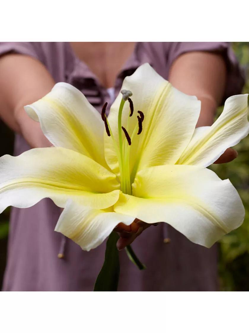 Lilies are one of the truly great garden plants, as they are beloved by gardeners everywhere. Their beauty, diversity, extended season of bloom, graceful stature and overall reliable disposition reflect the fruits of hundreds of years of selective breeding. In Chinese, the word "Lily" means "forever in love". The lilium family is so large, varied, and complex that it is challenging to describe them in short. Lilies are deer and critter resistant. Plant just about anywhere - borders, beds, cutting gardens, perennial gardens, pots and containers. Lilium Big Brother lives up to its name. This oriental trumpet lily produces fragrant, yellow flowers on sturdy stems to support the weight of the oversized flowers. It's known for its huge 6' tall tree like stems and great big giant 14-15" fragrant flowers. By the third year they will normally attain their maximum height and flower size. Great choice for the cut garden or for creating that curb appeal to wow the neighbors. Good naturalizer returning for years to come. Very easy to grow. Several stems grow from a single bulb.