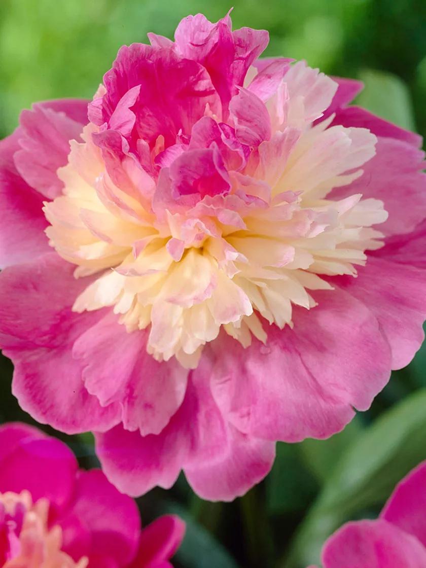 Peonies are perennials and are known to live for decades, even generations. The blooms are outrageously beautiful, producing lush, glossy, green foliage all summer long, turning purplish or gold in the fall, as stately and dignified as any shrub. They are somewhat more expensive to propagate, but well worth the investment in your garden. Double peonies, which is what these are, are by far the most popular of all peony types and the most widely planted. This unique Japanese peony - Gay Paree - not to be confused with tree peonies, is similar in flower to the single peony varieties but with a more elaborate center. This late flowering variety features rose-pink outer petals around a creamy white center made up of petaloids.
