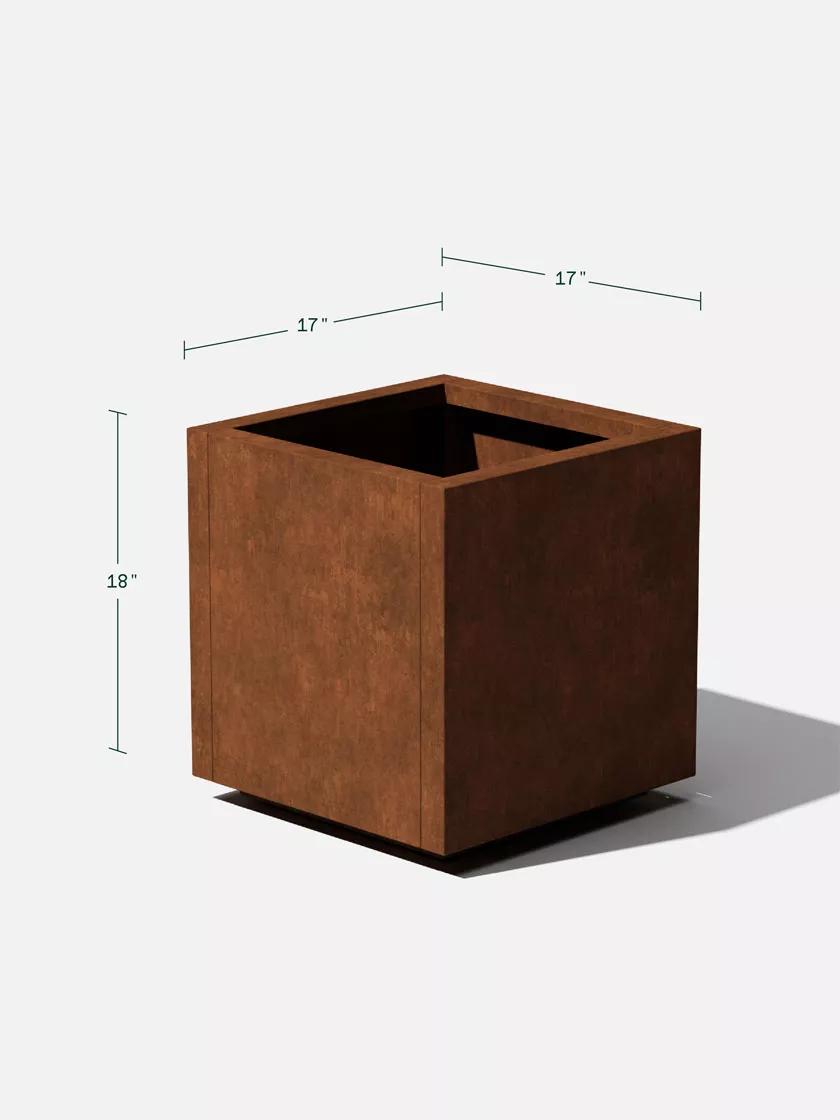 Featuring a rusted patina finish and a modern square design, the Corten Cube planter is ideal as a patio accent or as a front entrance focal point. Crafted from a heavy gauge, fully seam-welded Corten steel base, these planters are proven to resist weather-related issues such as cracking in both winter and summer months. In addition, they're equipped with Styrofoam™ insulation to help ensure that plants stay healthy in both hot and cold extremes.