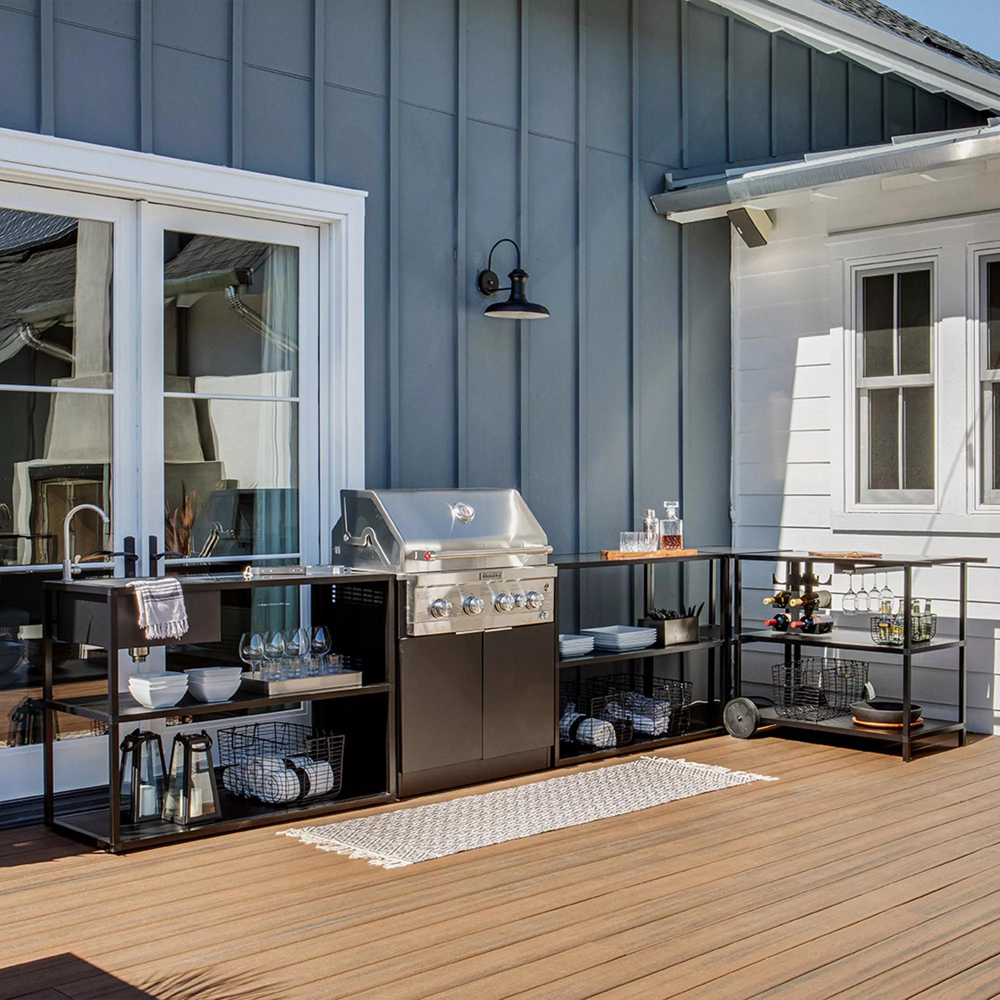 Maximize your time in the outdoors! With Veradek Outdoor Kitchen modules, you can design the perfect kitchen to fit your unique outdoor space. Used as a kitchen island, a side console or as part of a larger outdoor set, the Veradek Long Counter module is functional and versatile. Made from a sturdy, corrosion resistant aluminum frame and protected by a strong, scratch-powdercoat, Veradek Outdoor Kitchen modules are built for the outdoors. All Kitchen Counter modules come equipped with a durable, food-safe brushed stainless steel countertop that is easy to clean and maintain. Lower shelving panels are made from corrosion-resistant, powder-coated aluminum and come equipped with durable anti-scratch mats. Best of all, all Veradek Kitchen pieces are modular, allowing you to mix and match modules to create a kitchen to perfectly fit your unique patio or deck area. In addition, unlike traditional outdoor kitchens, Veradek Outdoor Kitchen modules can be quickly and easily set up with no professional installation needed. Get your outdoor party started with a Veradek Outdoor Kitchen!