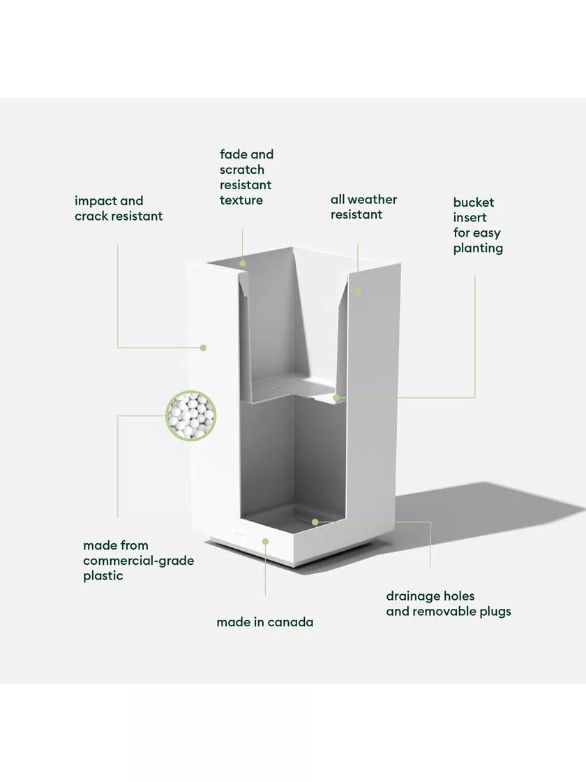 Tall and sleek, the Pedestal planter is the perfect addition to any front entrance, deck or patio. Featuring a modern modular design, the Pedestal planter is ideal as a patio accent or as a front entrance center piece. Crafted from commercial grade plastic (polypropylene) and made in Canada, all Veradek Block series planters are proven to resist weather related splitting and cracking – both in Winter and Summer. All Block series planters are solid, yet lightweight and are protected by UV inhibitors to ensure that fading is not an issue in the hot summer months. In addition, all Pedestal planters are made with a removable insert bucket to make planting quicker and easier. With a Veradek product, you can rest assured that you are receiving the perfect balance of design, durability and convenience.