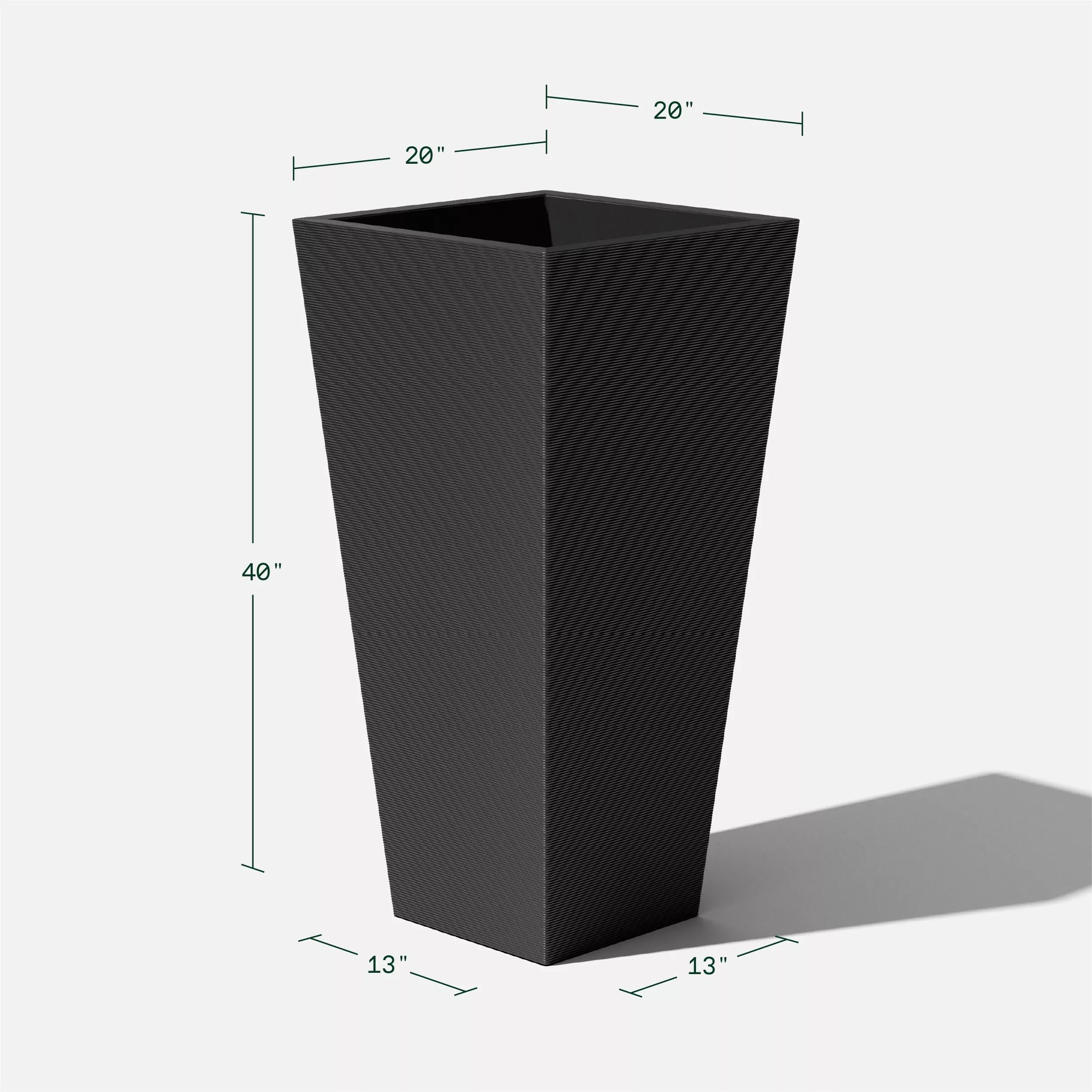 Tall and distinctive, the tapered Column planter is the perfect addition to any front entrance or poolside patio. Characterized by a grooved finish and a modern, sleek square tapered design, the Column planter was specifically designed for the commercial user in mind as a part of our Pro Series. Molded from an extremely durable plastic through a process known as roto molding, all Pro Series planters are crack proof and designed to withstand temperatures ranging from -30 degrees in the Winter up to +60 degrees in the Summer. Pro Series planters are flexible, impact resistant, fade resistant, sturdy yet lightweight and are covered by a comprehensive 10-Year splitting and cracking warranty. With a Veradek product you can rest assured that you are receiving the perfect balance of design, durability and convenience.
