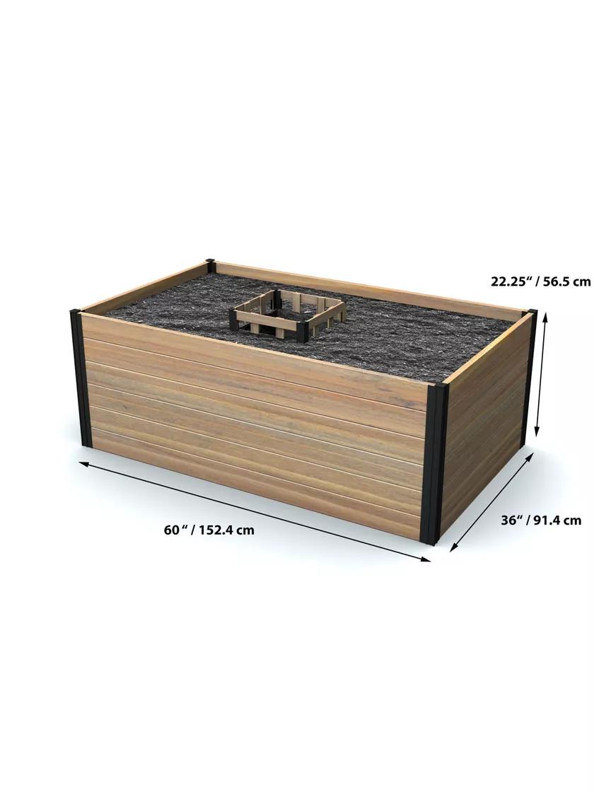 Mezza embraces the timelessness of wood with modern minimalist design. The Mezza Keyhole Composting Garden is crafted from beautiful, sustainably sourced FSC cedar and inspired by the African keyhole gardening technique. It’s an ingenious system that lets you compost household waste and easily grow fresh, organic vegetables in the same garden. A central compost basket is used to conveniently place your daily kitchen scraps. This household waste is then organically transformed into nutrient rich soil that nourishes your vegetables.