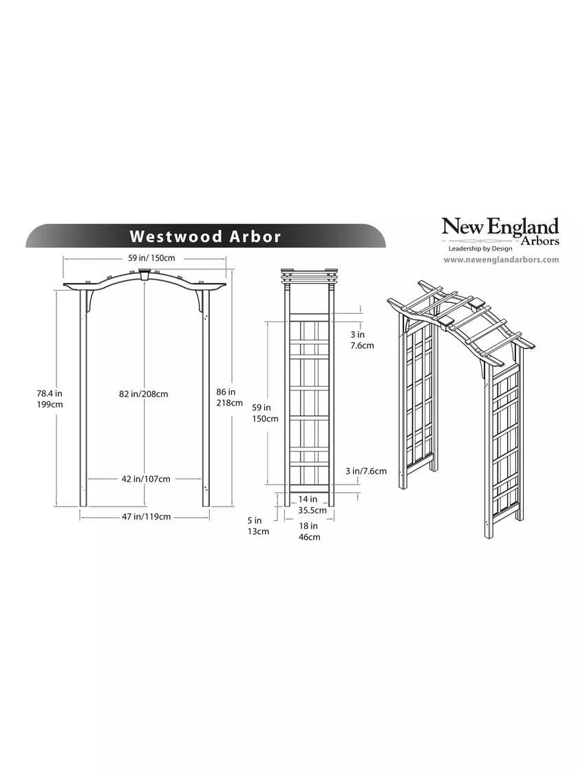 Enjoy the rustic feel and classic design of the Westwood Arbor. A welcome addition to any landscape, the pre-stained cedar Westwood Arbor is easy to assemble and install. Arbor opening is 42” wide and posts are 2” x 3.5”.