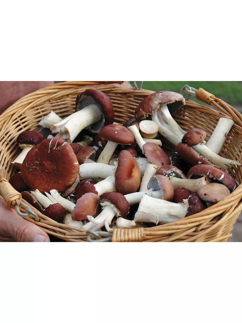 These Wine Caps (Stropharia rugoso-annulata) from Field & Forest Products are the easiest to grow garden mushrooms and serve as a decomposer of wood chips and/or straw. Grown in beds, Wine Cap mushrooms grow quickly and their port wine-colored caps and white stalks are great for braising, sautéing, grilling or pickling. Wine Cap beds should be planted in partially shaded areas where they can be watered. Planted in the garden in wood chipped paths, under fruit trees, or under perennial plantings, the Wine Cap mycelium can help build soil organic matter while producing a beautiful crop! Wine Cap can also be planted over sod (a layer of cardboard must be laid down first). One 5.5 lb. bag plants a 50 sq. ft bed of hardwood chips 6" deep.