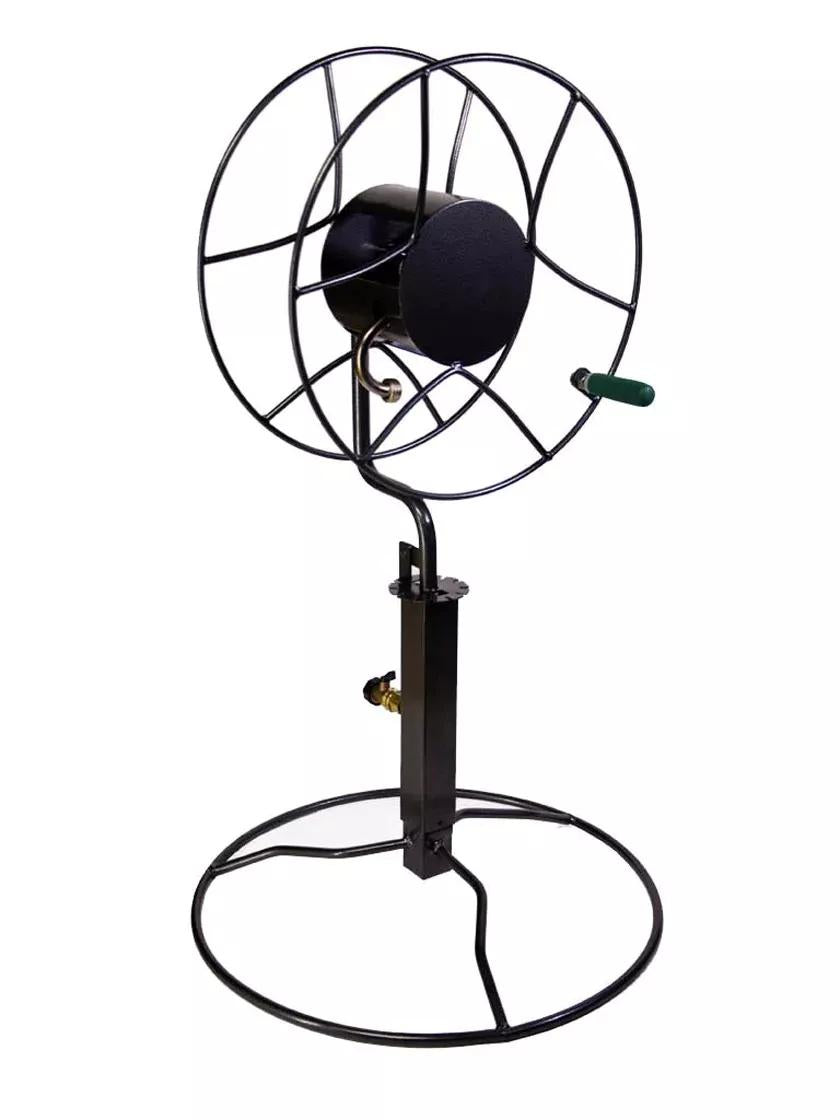 The perfect stand for the patio, out by the barn, or anywhere else that needs your tending. With 360-degree rotation, anti-kink design, and capacity for 200-feet of hose, the free-standing patio swivel hose reel can deliver water to a 3-acre area. It stands high so you can stand proud. Because after a day of hard work, the last thing you want is to bend or strain to reel in your hose.